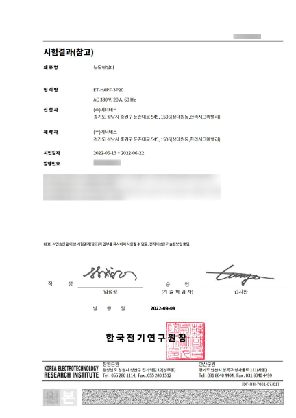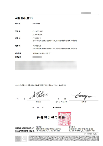 한국기계전기전자시험연구원 EMS 성능평가 시험 확인