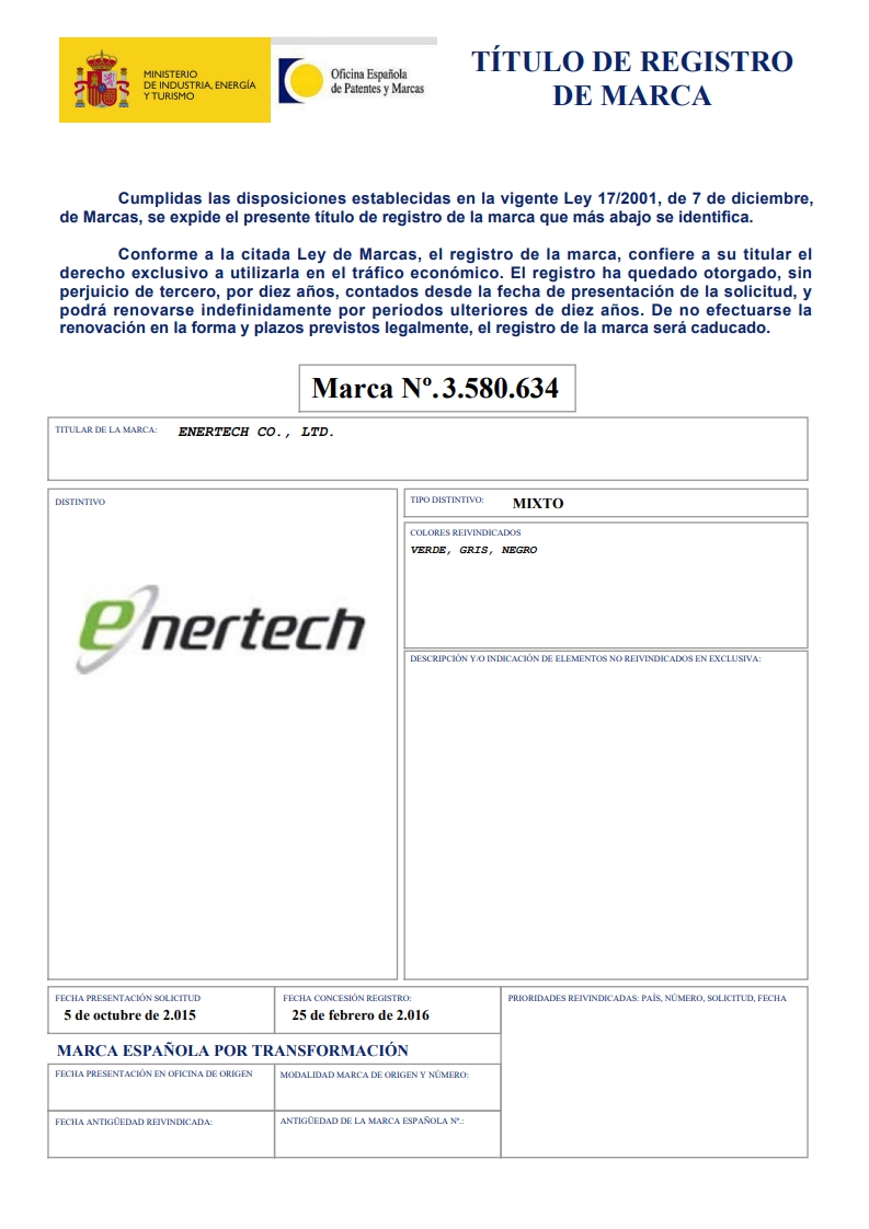 ENERTECH (스페인 상표권)